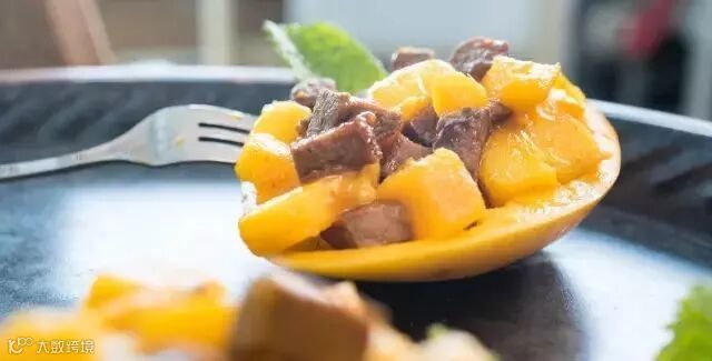 芒果柔软的质地和酸甜的口感,牛肉嫩且多汁,一口下去,满是惊喜!