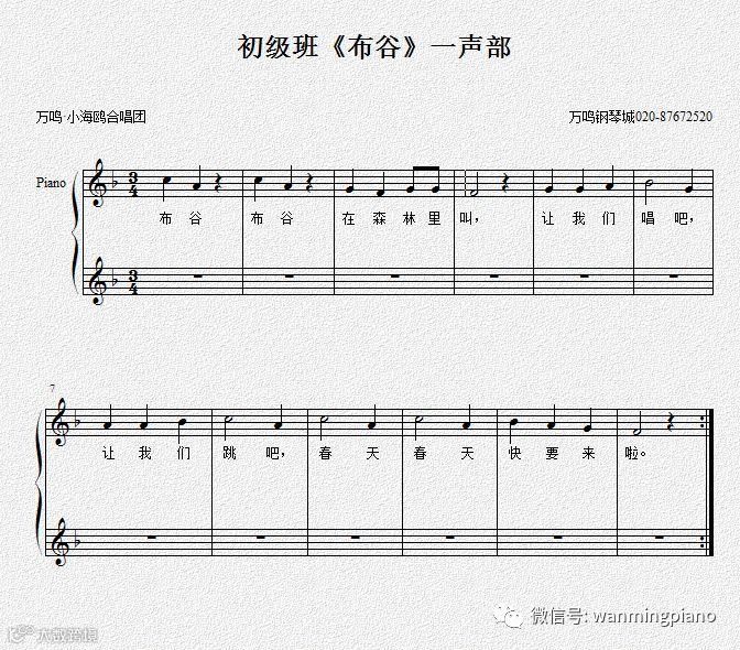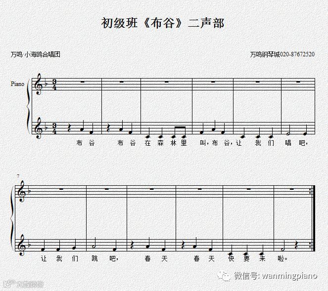 (5)最后用二声部合唱形式来表现三拍子歌曲《布谷》。