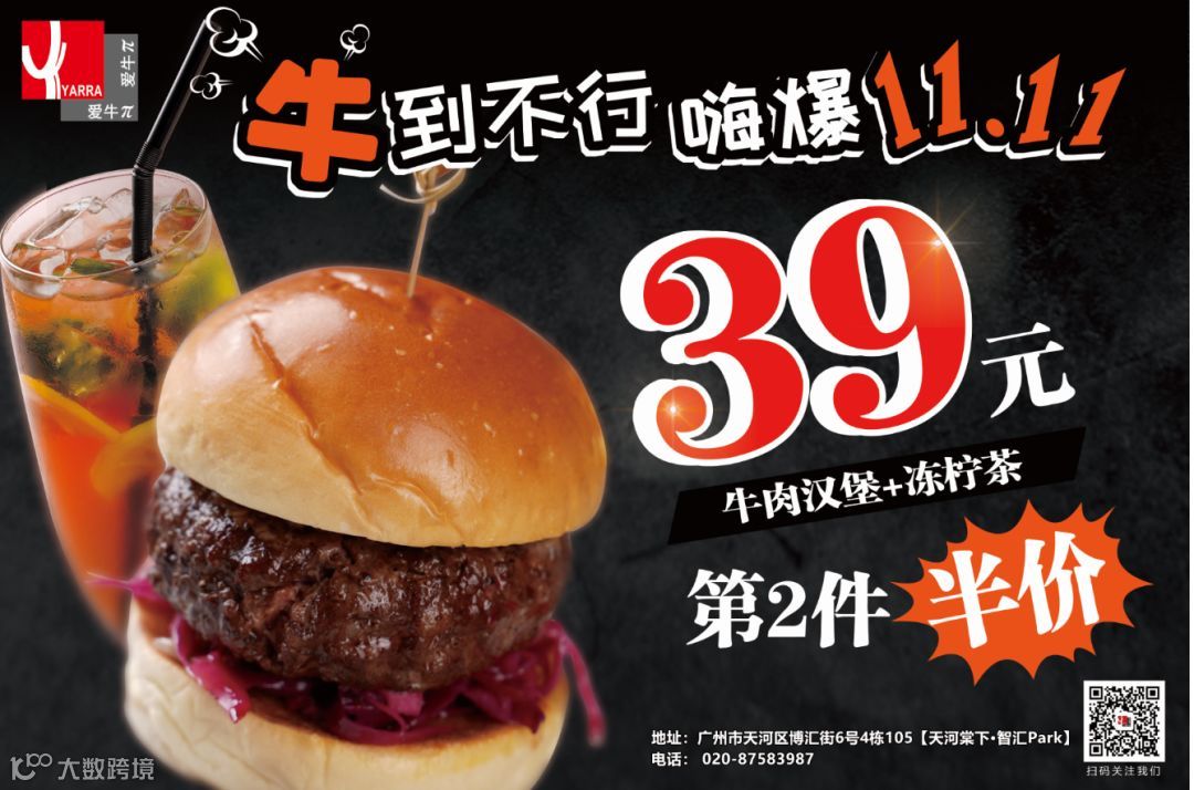 澳洲鲜牛肉汉堡+冻柠茶39元,第二件半价