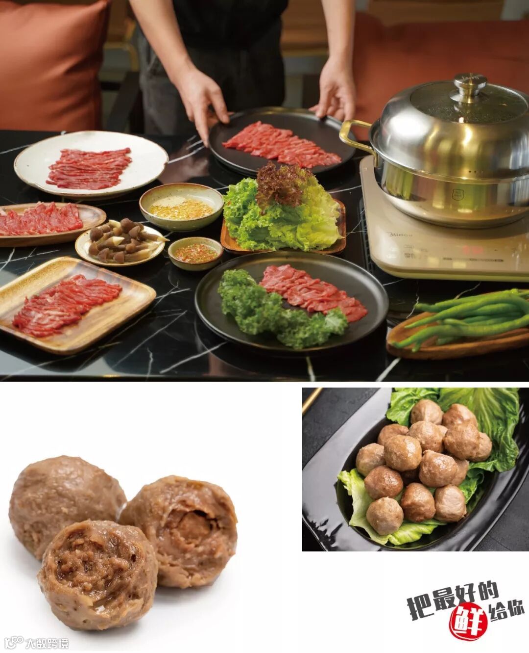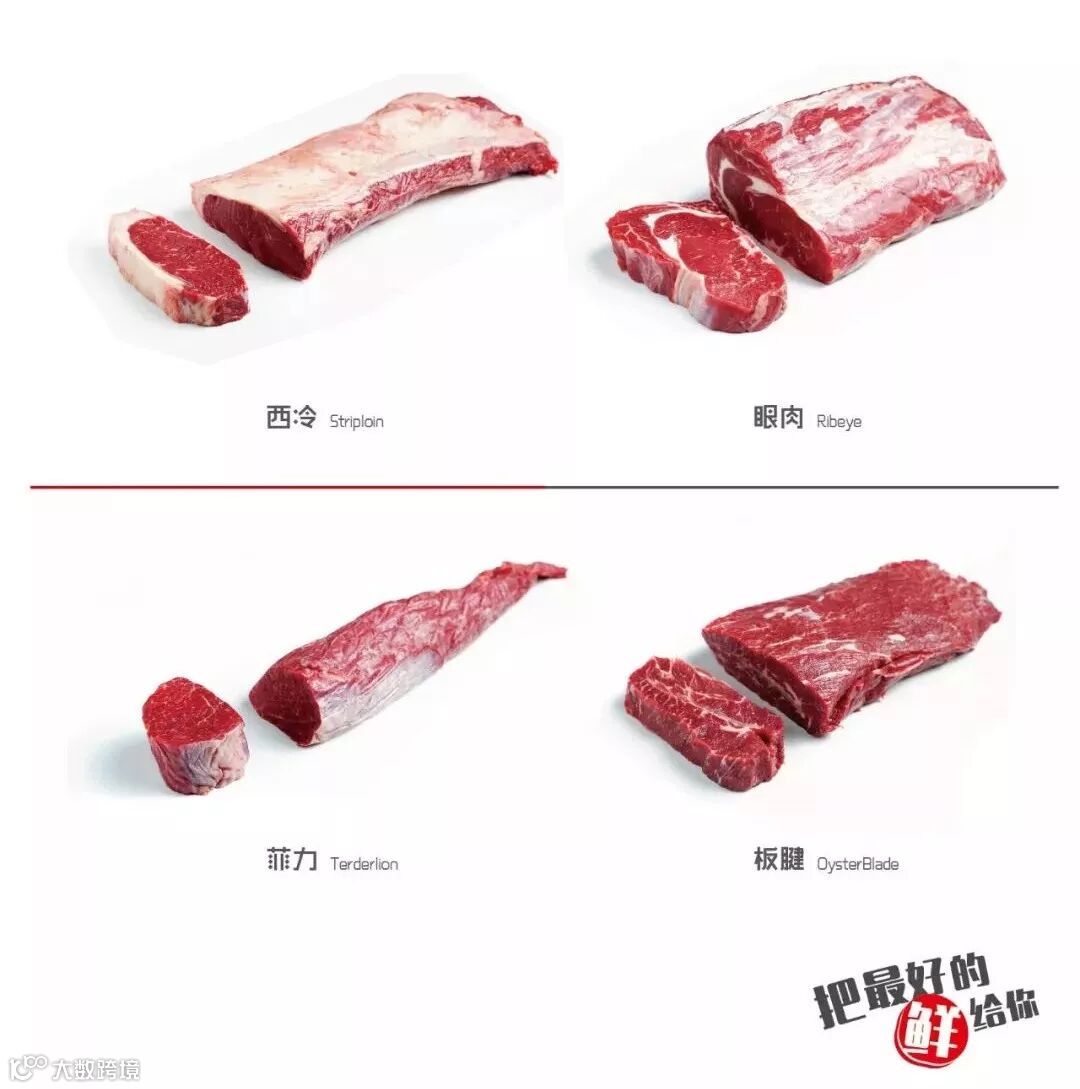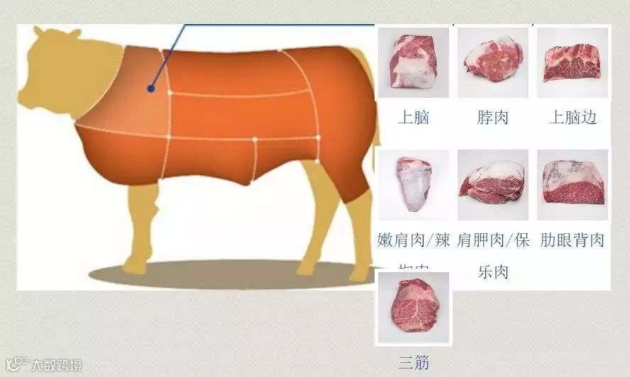 火锅客户选择的通常是肉眼(带骨眼肉,战斧牛排),西冷,牛柳,T骨牛排(骨头两侧大的一边是西冷,另一侧是牛柳)、前后胸、三角肉、臀肉芯这种。