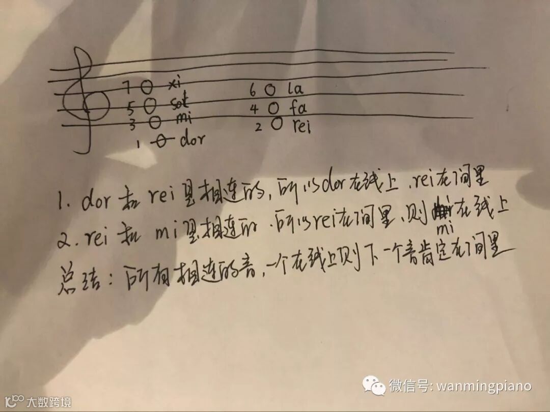 (3)我们可以看到dor、 mi、sol、xi简谱是1、3、5、7都是在线上;而rei、fa、la 简谱是2、4、6都是在房间里