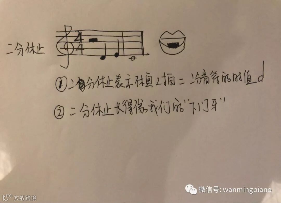 三、记住全休止的长相,是不是很像我们的上门牙齿呢?