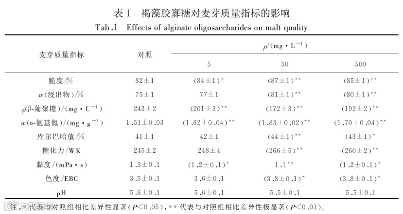 褐藻胶寡糖对麦芽质量的影响