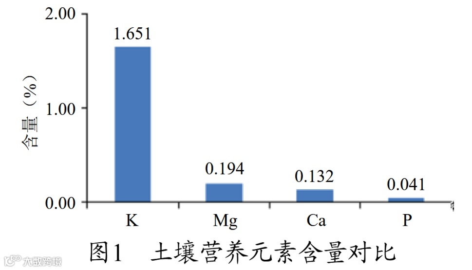 由图1可知槟榔园土壤中营养元素的含量大小依次为:K>Mg>Ca>P。