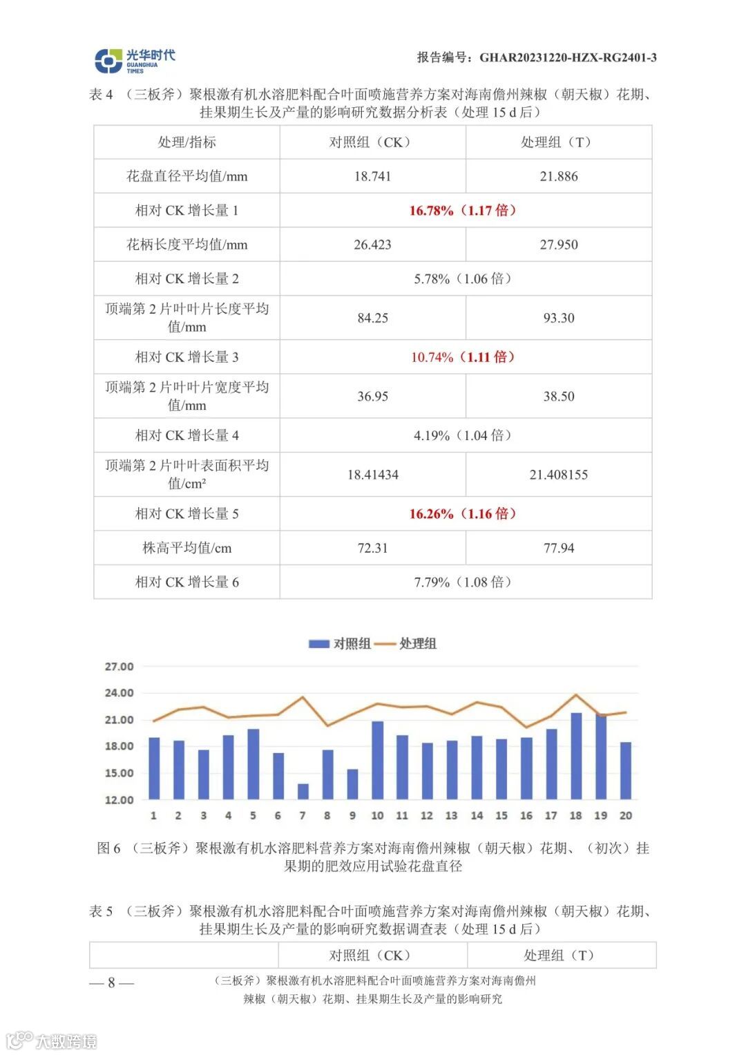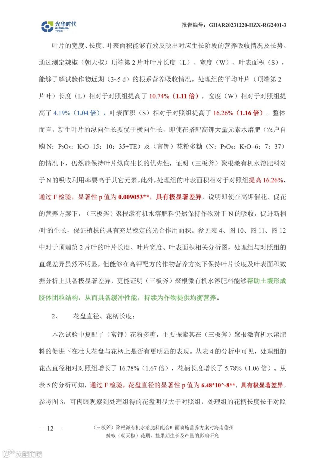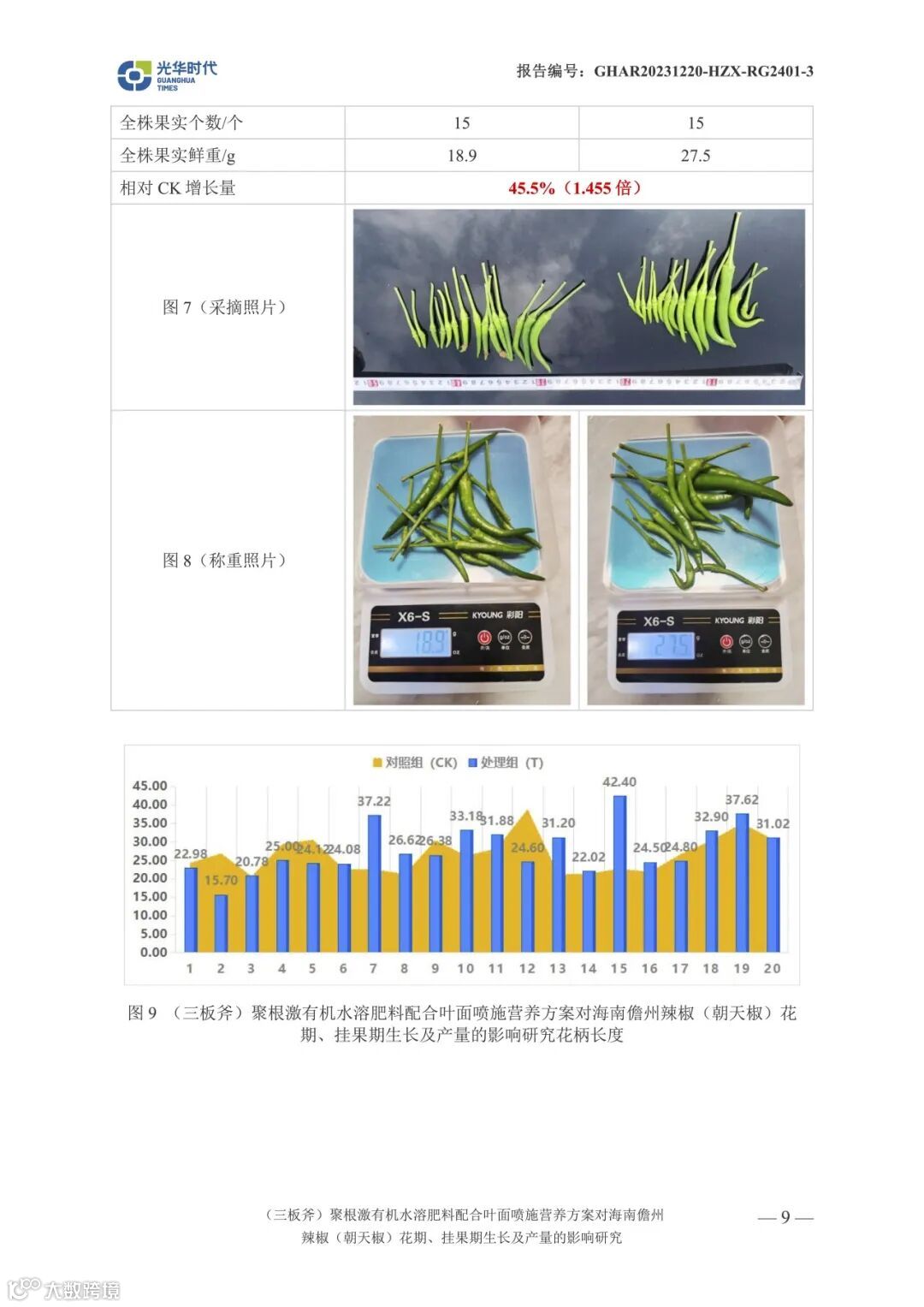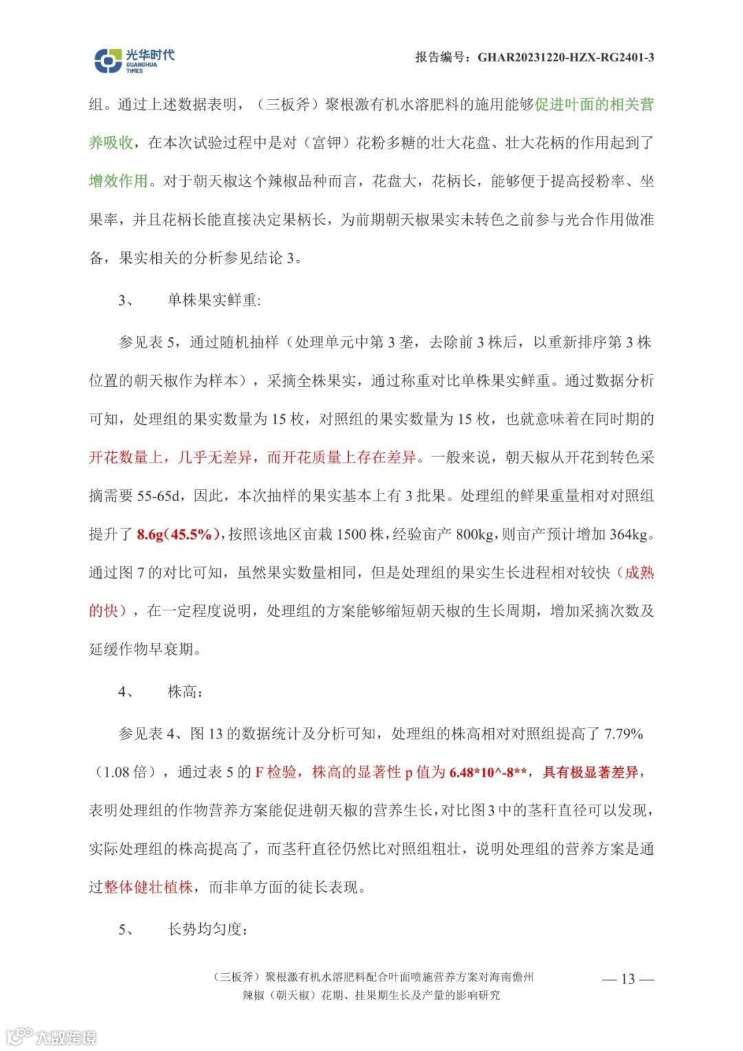 文案 | 数据来源光华时代(海南)生物科技有限公司产品应用效果试验报告《(三板斧)聚根激有机水溶肥料配合叶面喷施营养方案对海南儋州辣椒(朝天椒)花期、挂果期生长及产量相关影响试验》
