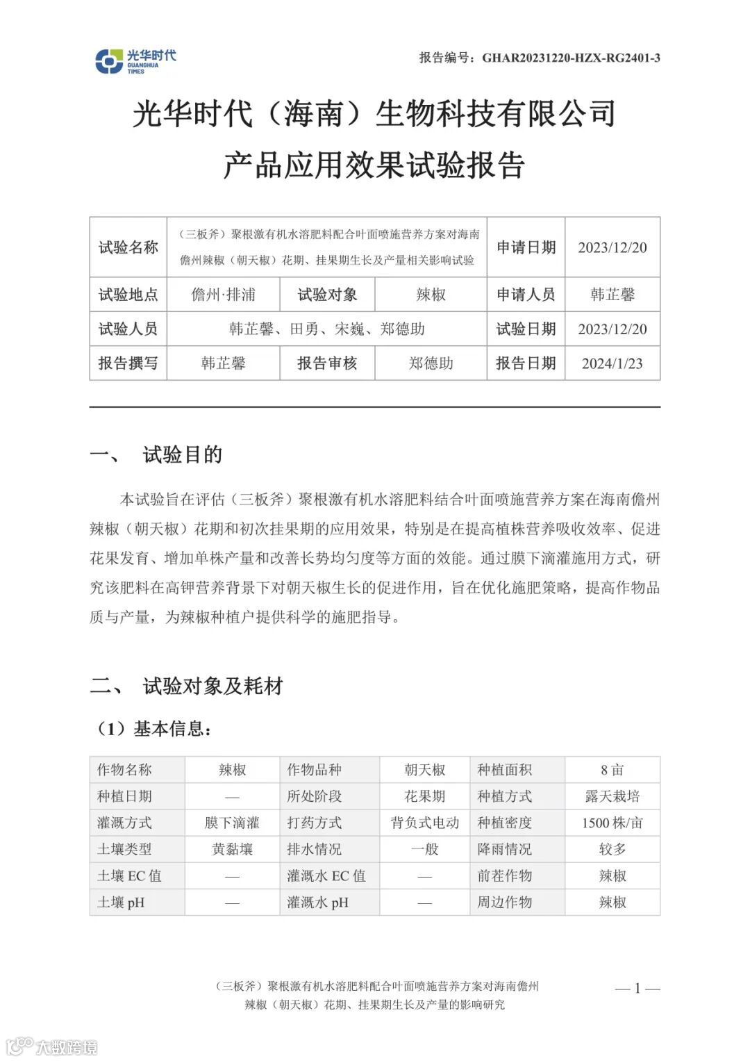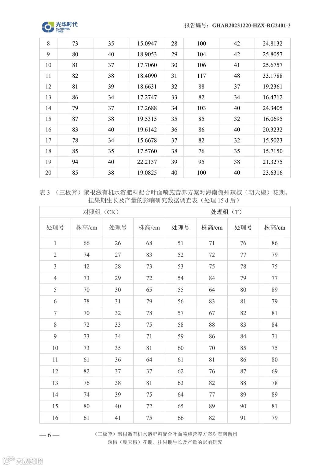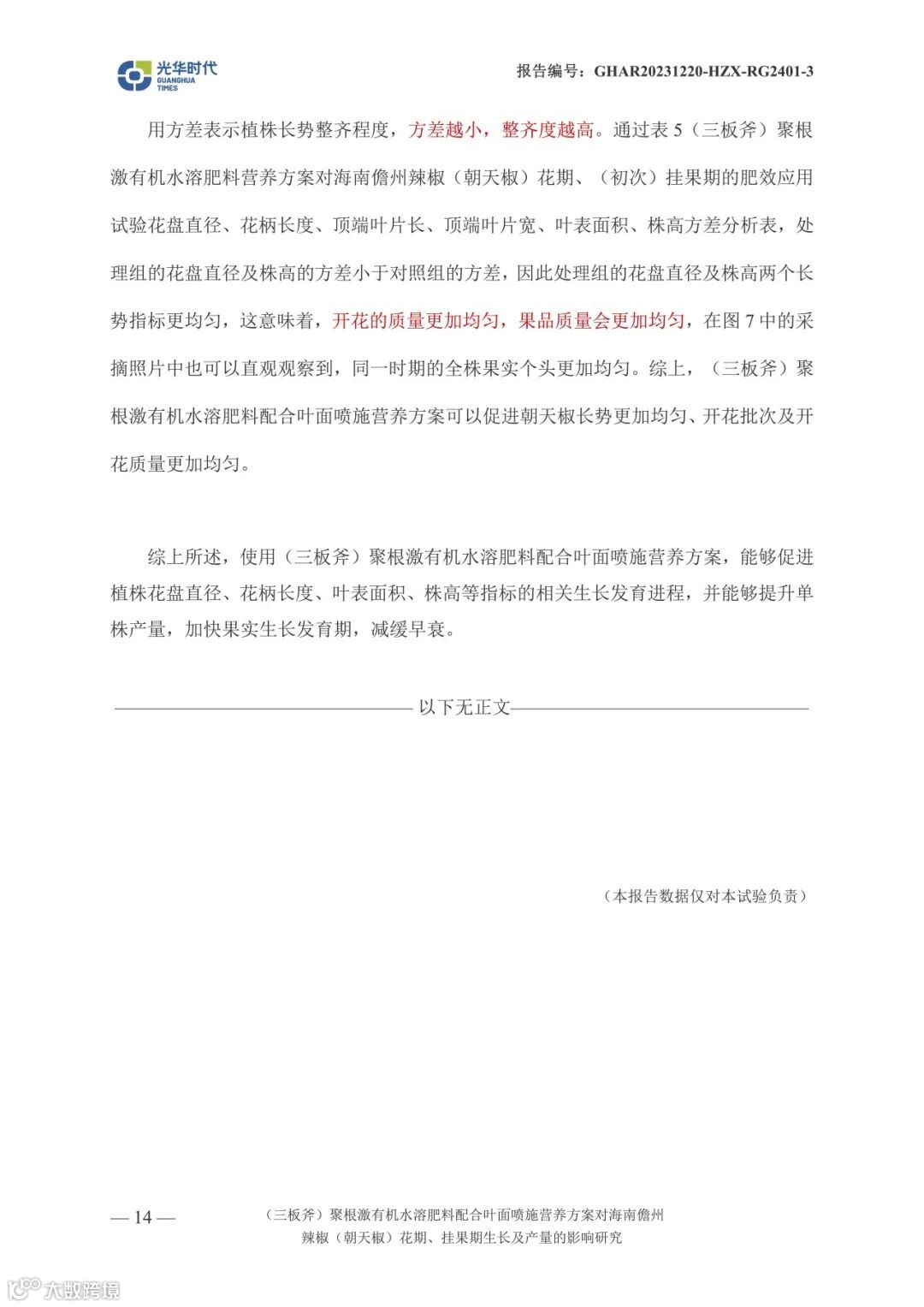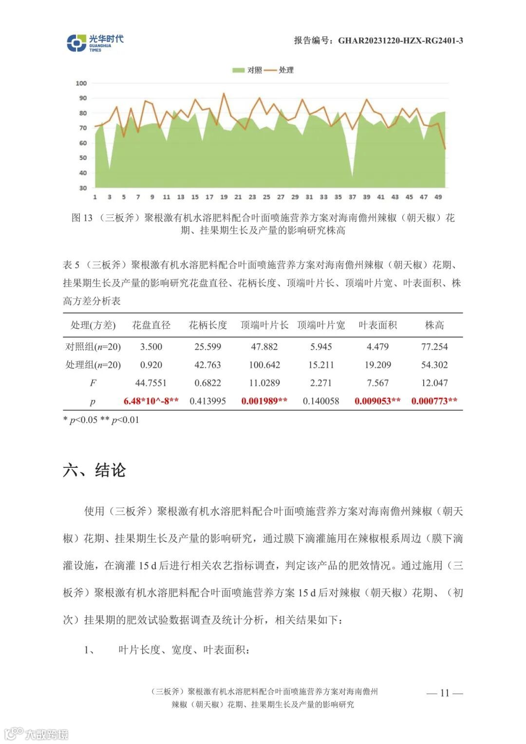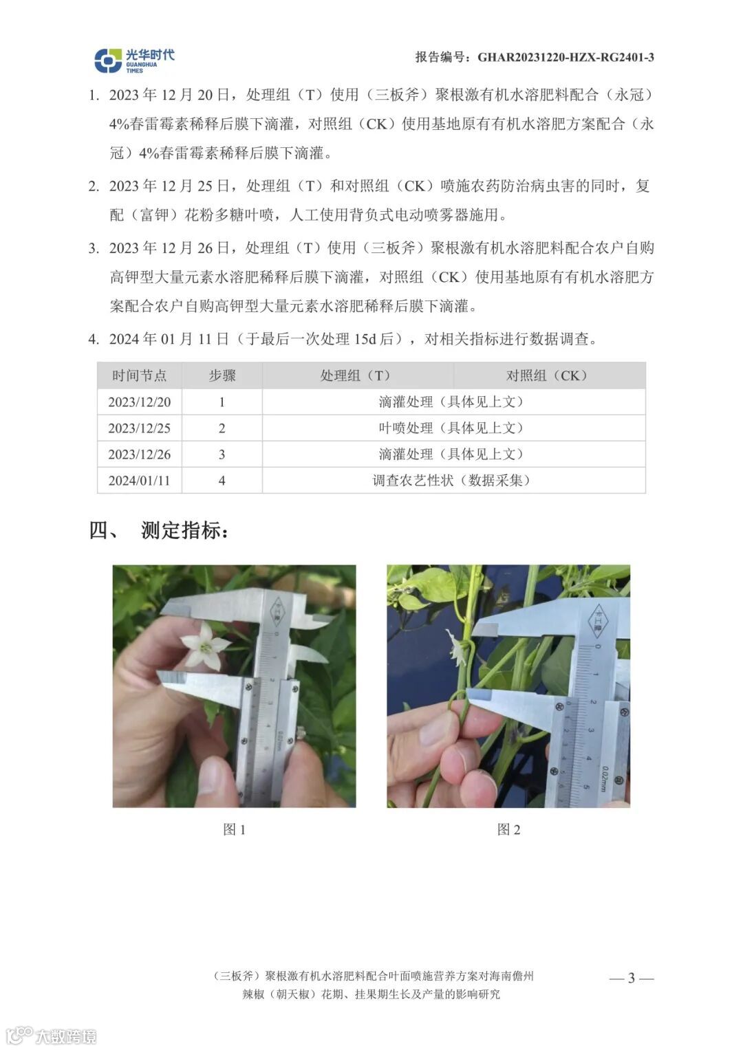 文案 | 数据来源光华时代(海南)生物科技有限公司产品应用效果试验报告《(三板斧)聚根激有机水溶肥料配合叶面喷施营养方案对海南儋州辣椒(朝天椒)花期、挂果期生长及产量相关影响试验》
