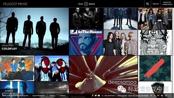 『标致音乐』国际性音乐体验平台由标致与著名音乐制作公司MBM MUSIC共同合作创造,这个音乐平台提供包括全球与当地歌手、音乐作家、音乐广播电台网站,以及线上音乐社群网站的信息。