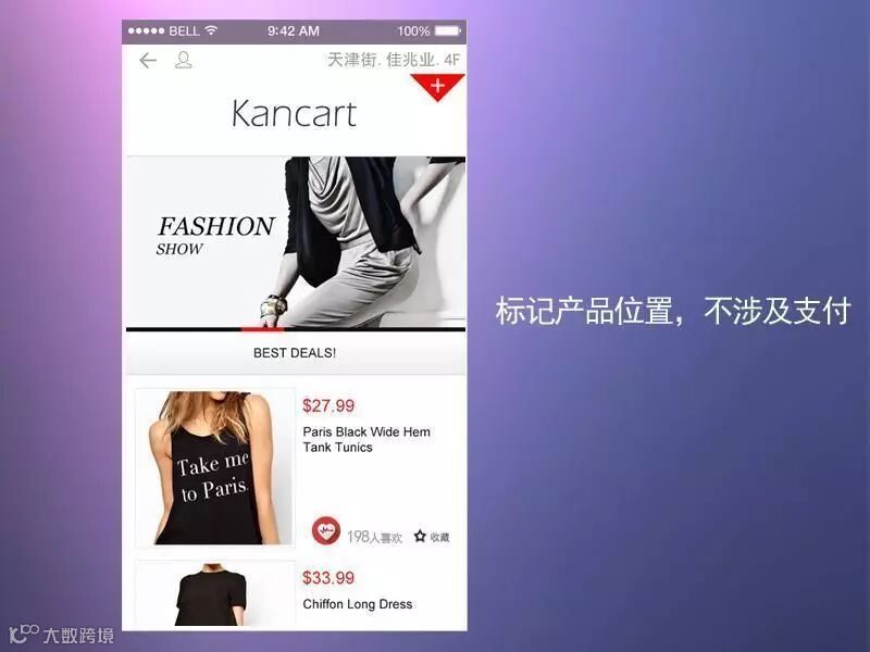 基于用户所在位置推荐附近商圈,对于那些为了节省时间、网购又怕买不到合身的衣服的白领们,提供在线浏览附近商场的服装到店试穿购买服务。