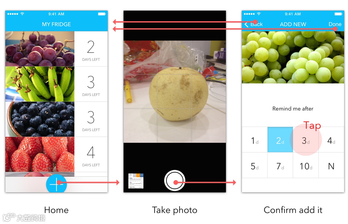 采用拍照形式,用户对要记录的东西拍照,设定一个提醒的时间。到时间后 App 提醒用户。将来可接入微信和邮件等方式,在提醒的同时通知用户,保证提醒效果。