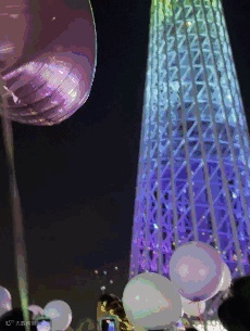 接近零点时游船停靠广州塔下