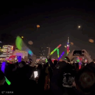 每个人举起手中的荧光棒