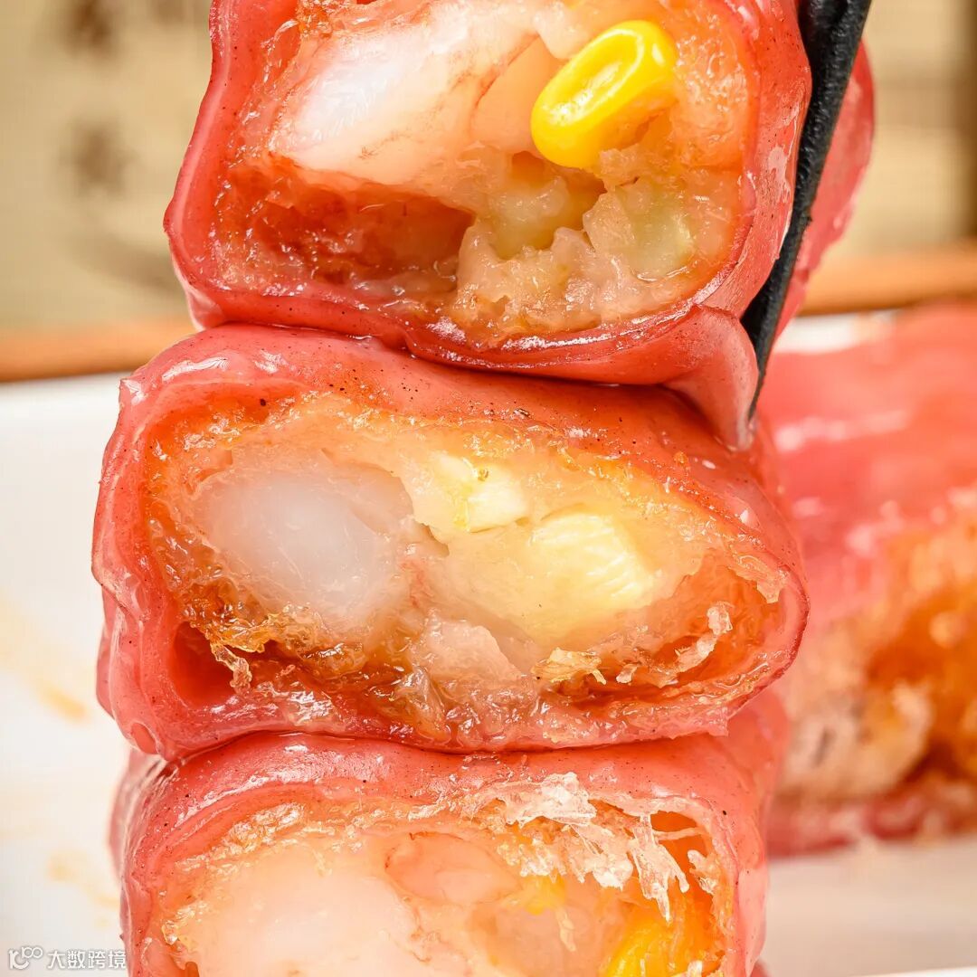 脆皮鲜虾红米肠 皮软糯,网皮酥脆还有爽口大虾 |