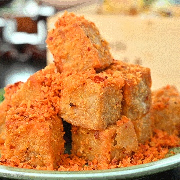 避风塘炒芋头糕 外壳酥脆无比,内里口感扎实 |