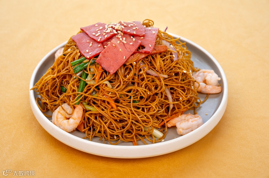 餐饮界的黑钻石黑松露与平民小食炒面的奇妙组合,撒在面头上的大片火腿肉和鲜虾仁带来整体咸香的口感。