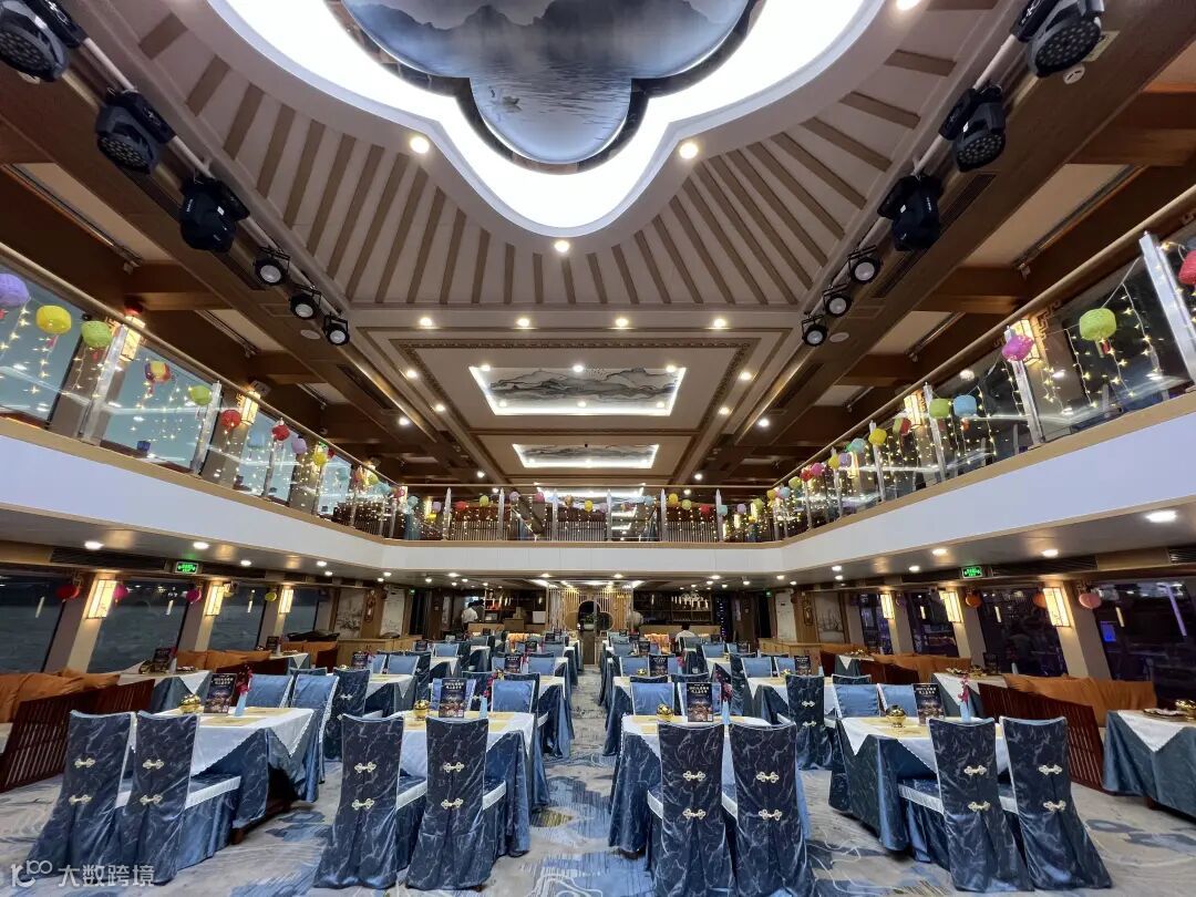 船上全天消费每满100元赠送20元优惠券,凭优惠券消费满100减20。