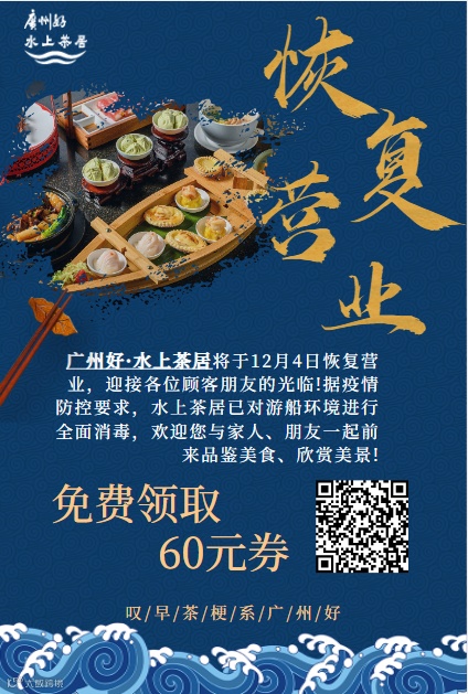 为回馈各位街坊朋友对水上茶居一如既往的支持,现在特别赠送60元优惠券,欢迎扫码领取过来叹茶!