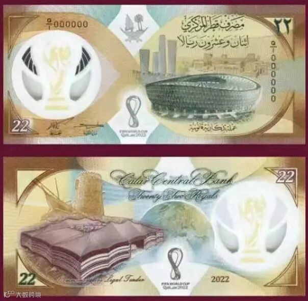 △2022年卡塔尔世界杯特别版纪念钞票,上方图片为卢塞尔球场。