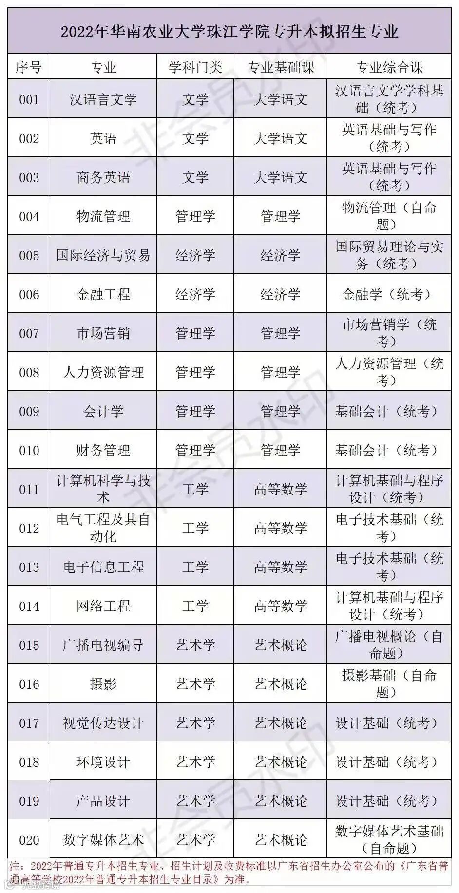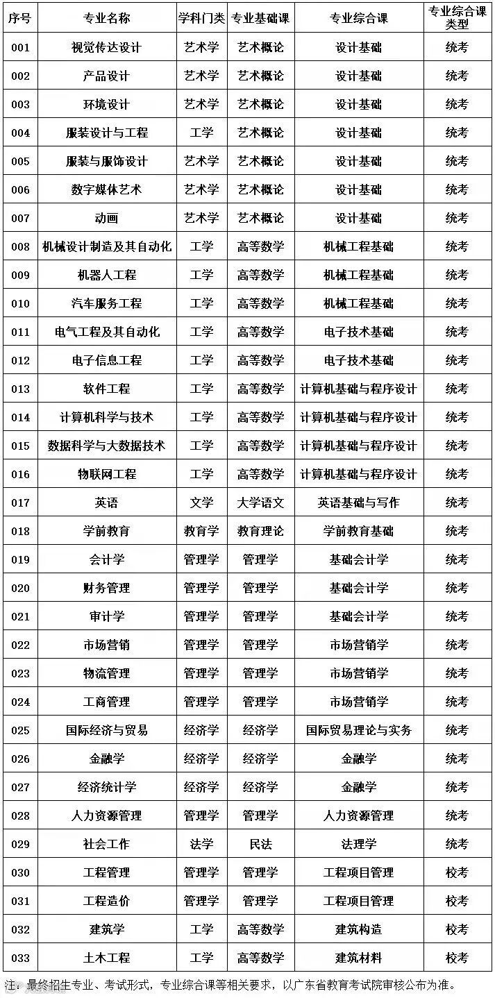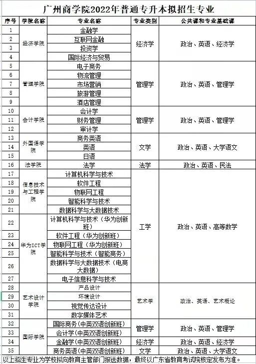 注:以上各院校招生专业以广东省招生办公室公布的《广东省2022年普通高等学校专升本招生专业目录》为准。