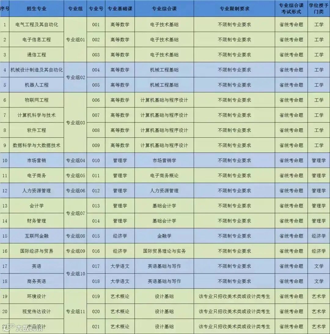 2022年我校普通专升本拟开设27个本科专业,涵盖工学、管理学、艺术学、经济学等学科门类。现将拟招生专业公布如下: