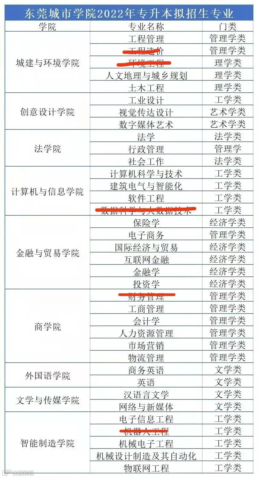 东莞城市学院(原东莞理工学院城市学院)公布了2022年拟招生专业,全部如下: