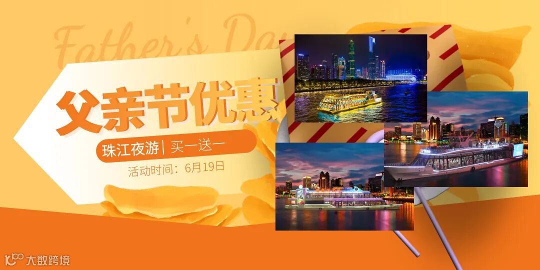 提前一天以上致电预约购买父亲节6月19日广州财富号自助餐航班享受两人同行,第二人半价优惠;线上购买父亲节当天珠江夜游非餐饮航班享受买一送一优惠。