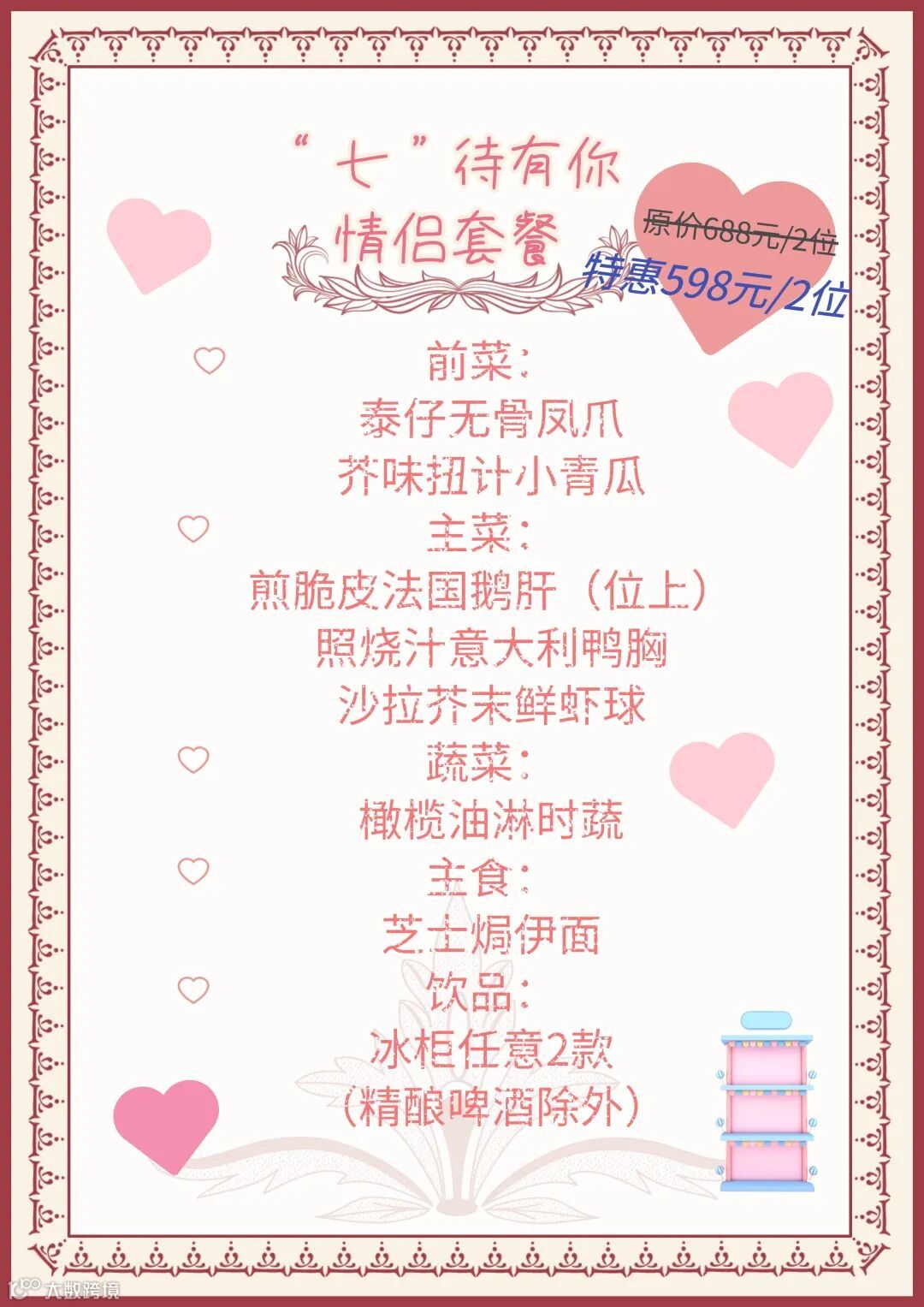 七夕当天享用双人套餐的情侣或船上二次消费满99元,赠送精美迷你花束一份