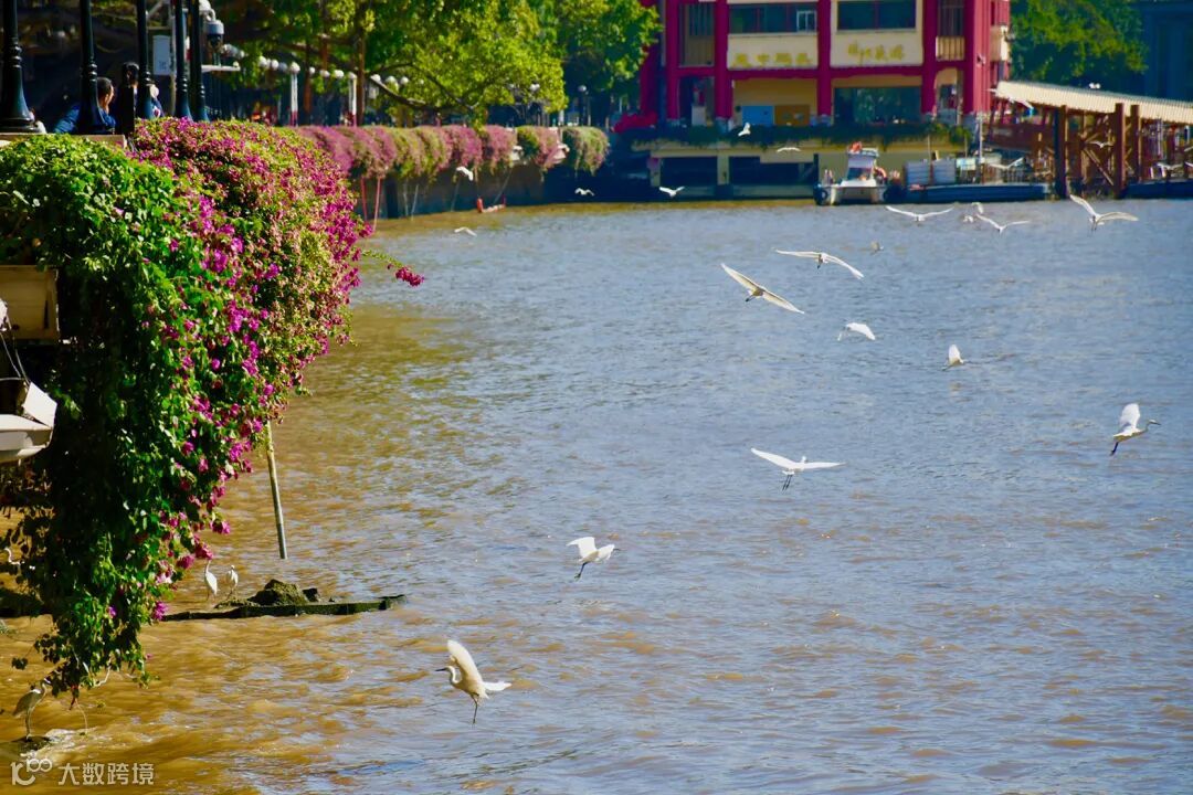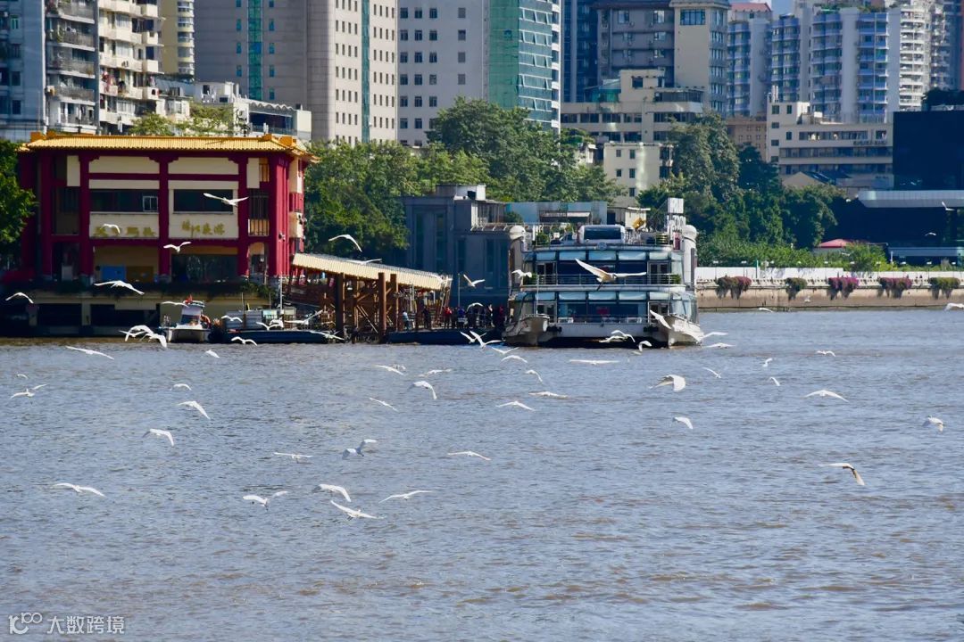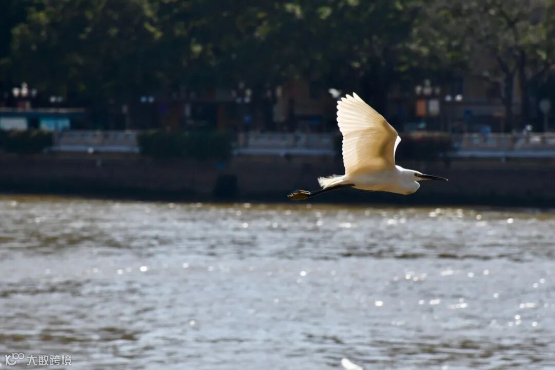 天字码头,水面波光粼粼,白鹭画出优美弧线。