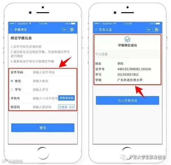 “绑定学籍信息”并“提交”。