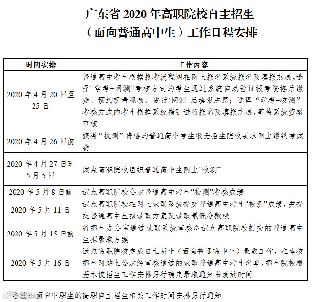 附件:广东省2020年高职院校自主招生(面向普通普通高中生)工作日程安排
