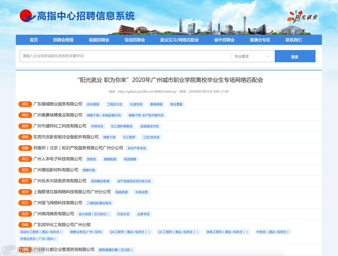 “阳光就业 职为你来”(广州城市职业学院离校毕业生专场)网络匹配会等你来