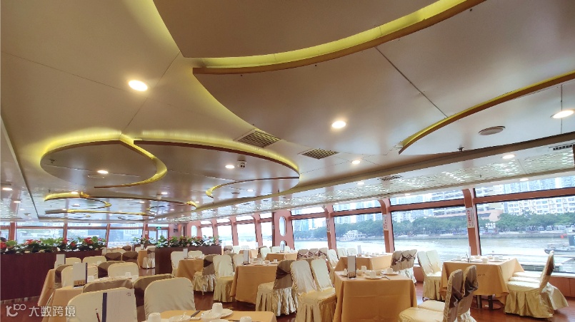 游船的整体装修也继承了传统茶楼之古韵,典雅古朴的元素相结合搭配,共同构成体现了兼具现代设计理念的中式茶楼。力求视觉开阔,营造大气、高雅的氛围,城市的喧嚣都由此隔离开来。