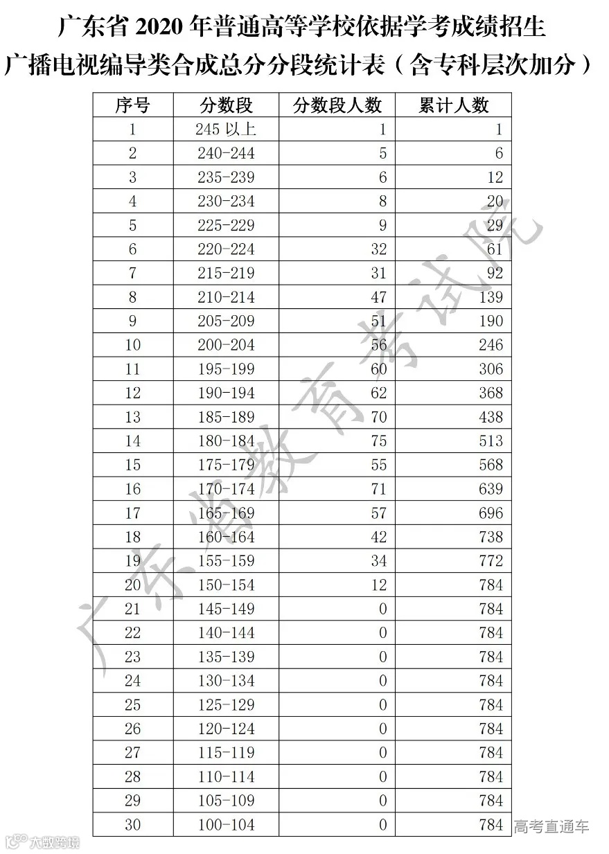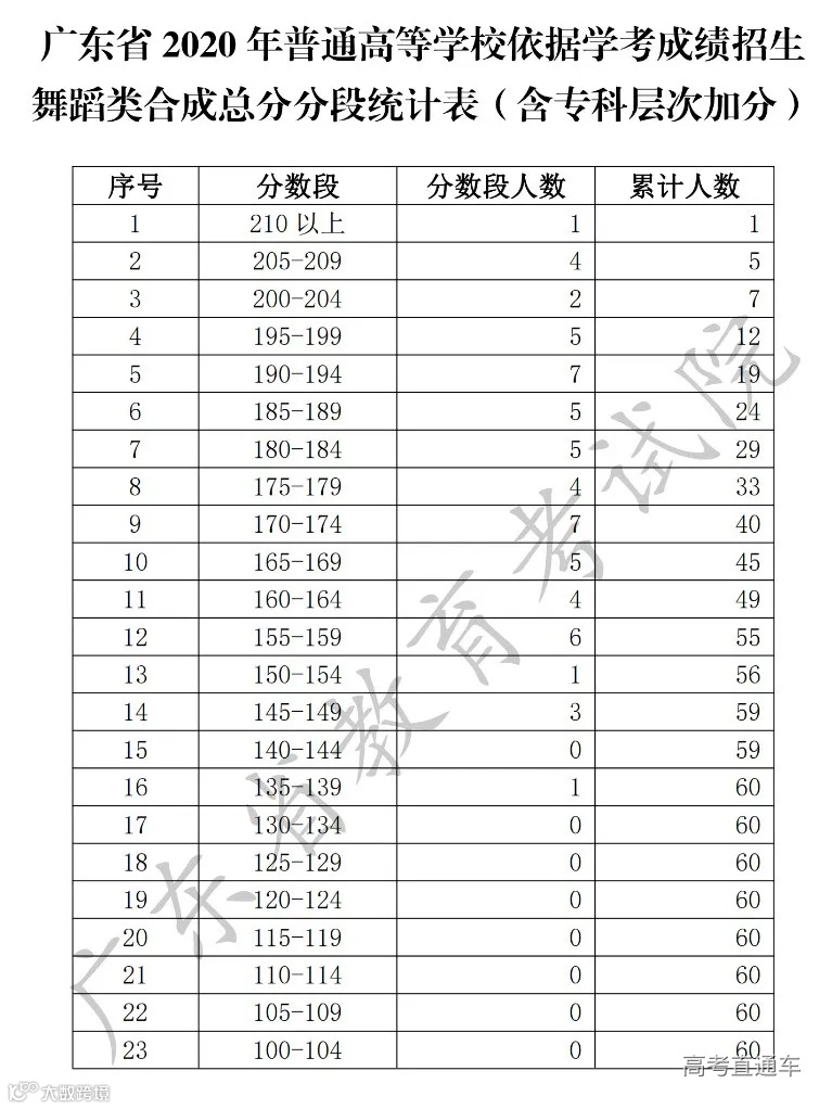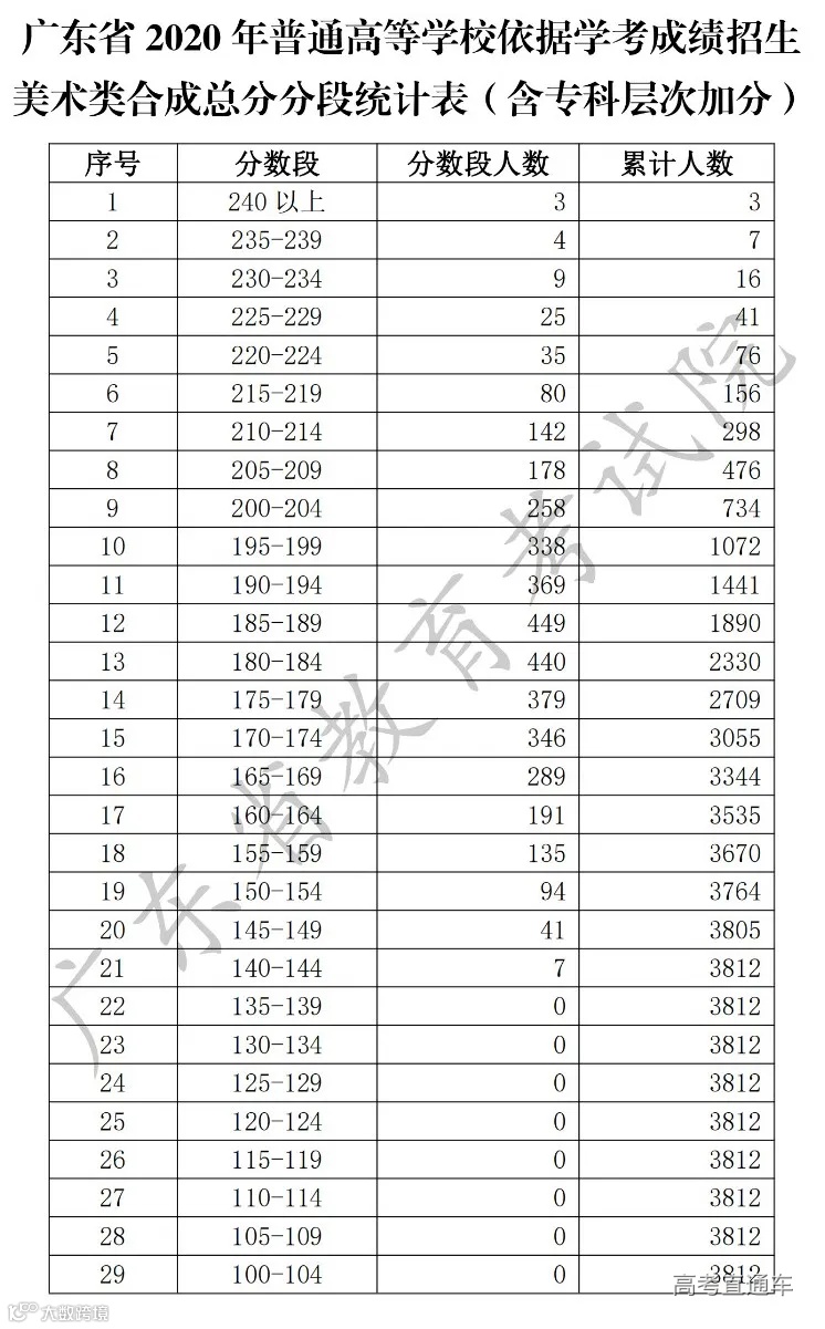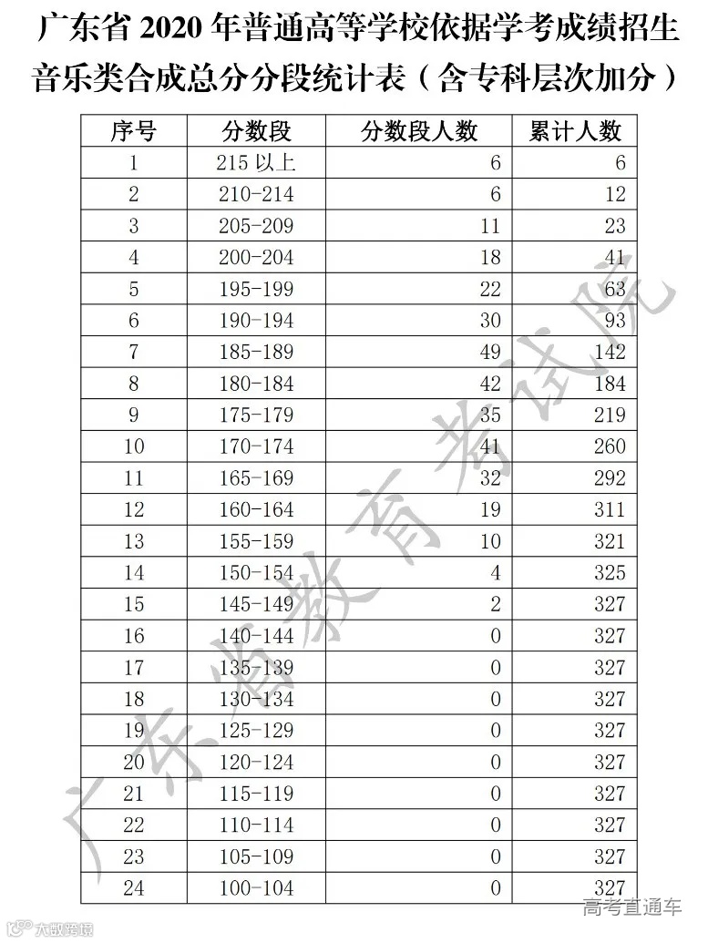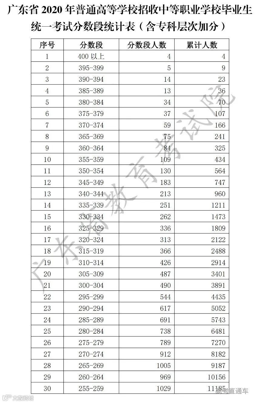 为便于考生志愿填报,确保志愿填报工作顺利进行,现将我省2020年普通高等学校春季高考(普通高等学校招收中等职业学校毕业生统一考试、高职院校依据普通高中学业水平考试成绩招生录取)各分数段成绩数据予以公布。其中术科类根据文化分和术科分的合成总分统计,且仅统计文化分、术科分双上线考生。