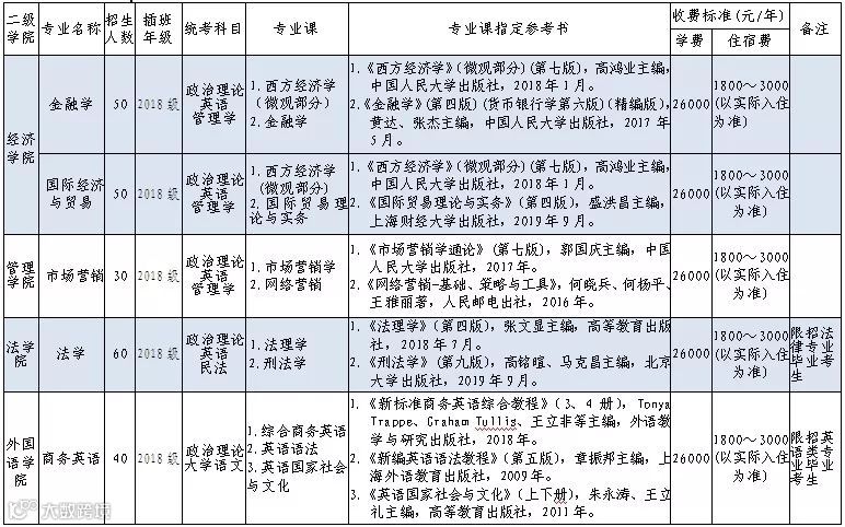 2020年广州商学院本科插班生拟招生专业、招生计划、省统一考试科目和学校自主考试专业课程