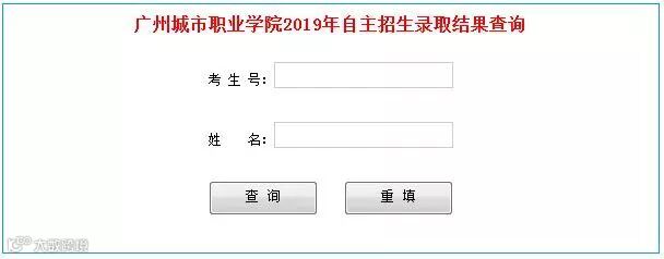 备注:2019年4月30日起可查询广州城市职业学院录取结果,数据更新至4月30日18:00时,录取结果以收到录取通知书为准!广东省考生请用10位数的考生号及姓名查询!