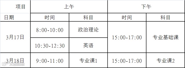 考试时间为2018年3月17日(星期六)至18日(星期日)两天,具体安排见下表: