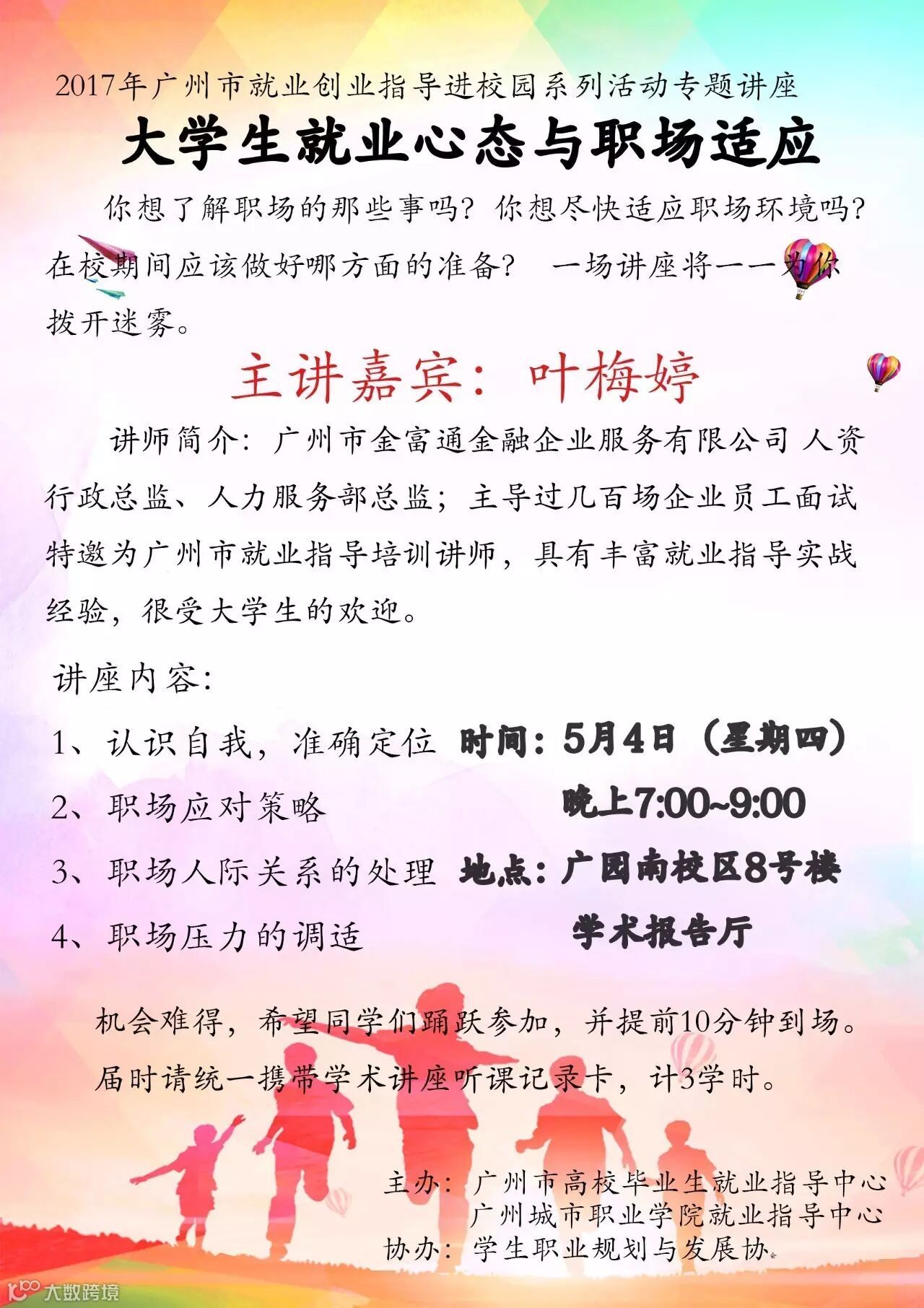 导读:想了解职场?想尽快适应职场环境?在校期间应该做好哪些准备?一场讲座将一一为你拨开迷雾。机会难得,欢迎同学们踊跃参加!