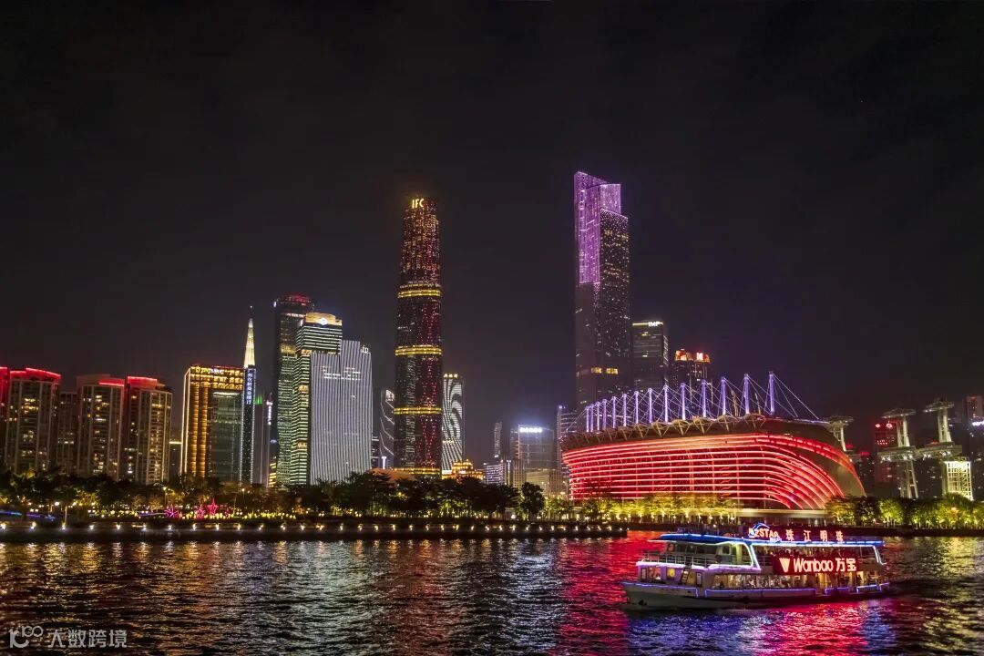 珠江七彩桥梁熠熠生辉,