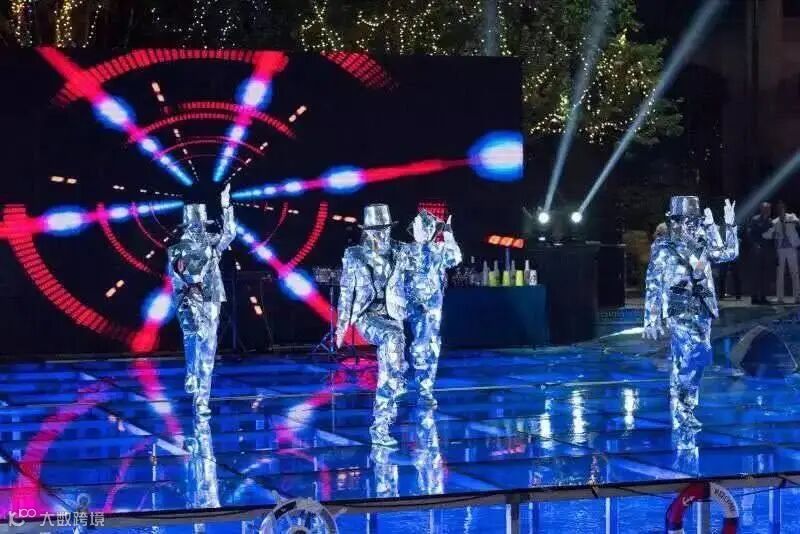 01 02 相信大家最近都被“赛博朋克”刷屏了吧 机械臂、摩天楼、霓虹灯 雨夜景、数码屏 尽管我们离真正的2077年还很远 但不妨在跨年夜这样充满了仪式感的夜晚 与广州财富号一起完成一场时空穿梭之旅 迷幻表演 既然是派对首先要嗨起来 灯光调暗射灯跟随音乐变幻 超酷舞者神秘登场 全场一起摇摆