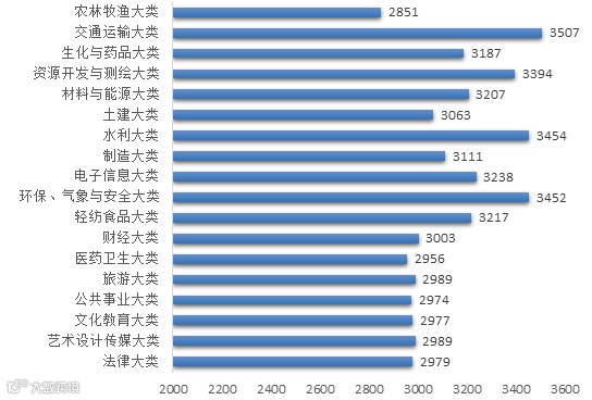 本科毕业生各学科平均月薪情况