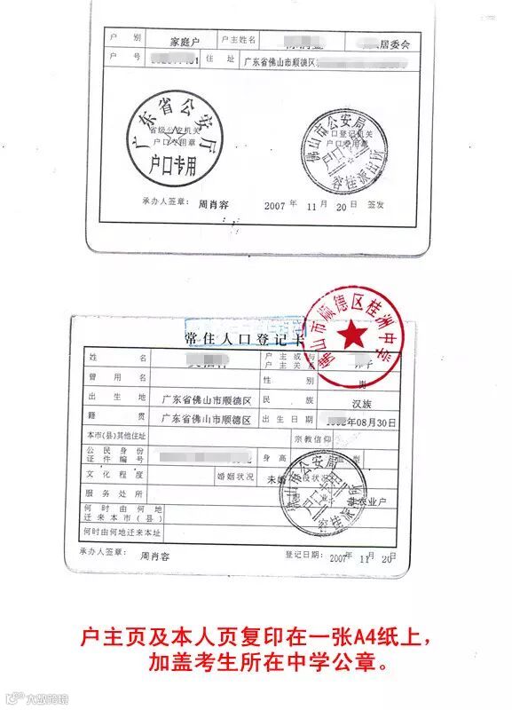 5、户口本户主页及本人页复印件