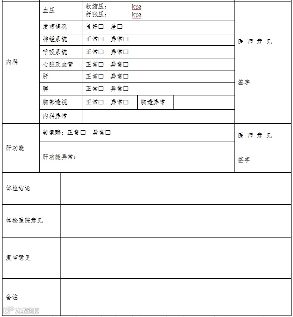 2.体检医师应在检查项目结果的正常或异常等后的空格打“√”。