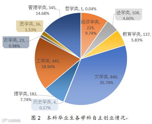 图1 毕业研究生各学科自主创业情况