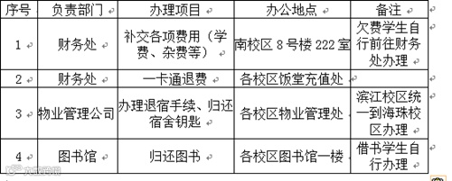 在分别在南校区、北校区、海珠校区办理离校手续。滨江校区的学生集中到海珠校区办理。
