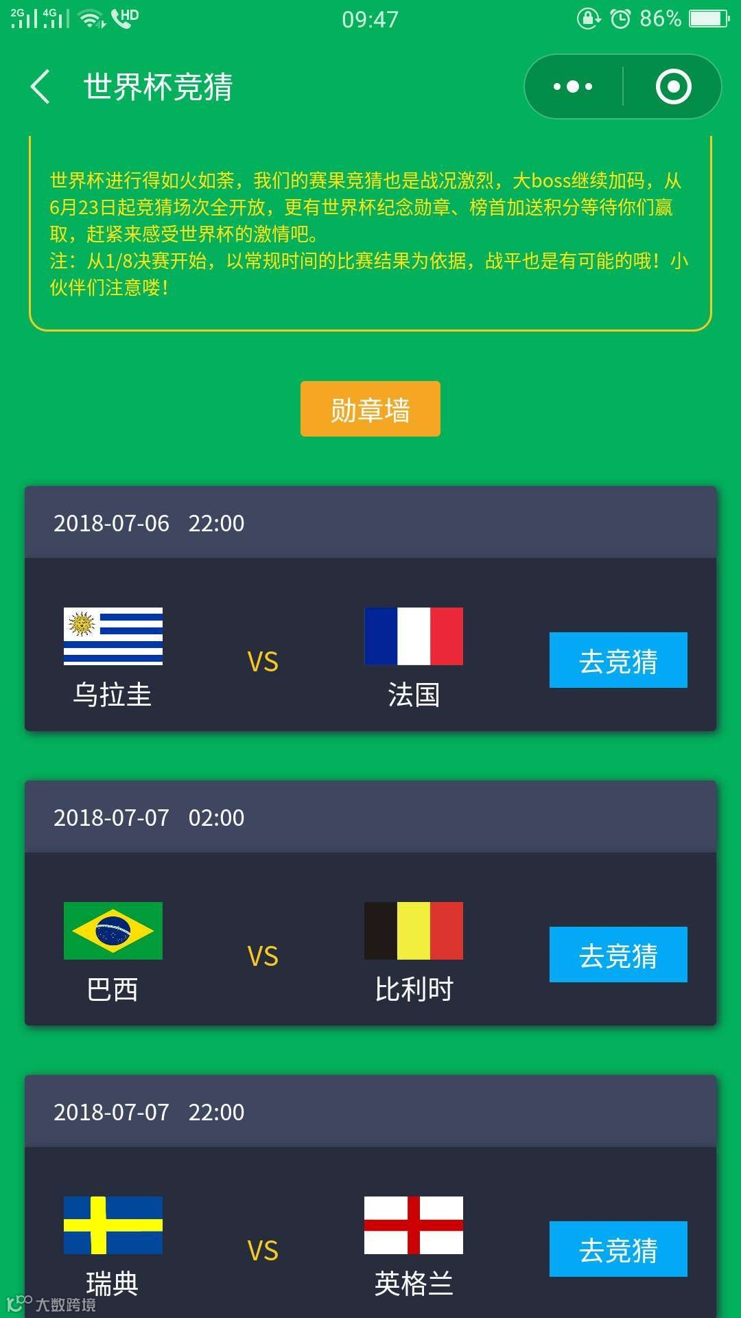 从6月17日开始,每天参与赛事竞猜,竞猜成功后可以赢取积分。