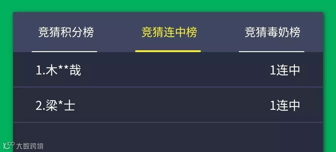 6月17日至7月15日期间连续竞猜获胜场次最多的排名。