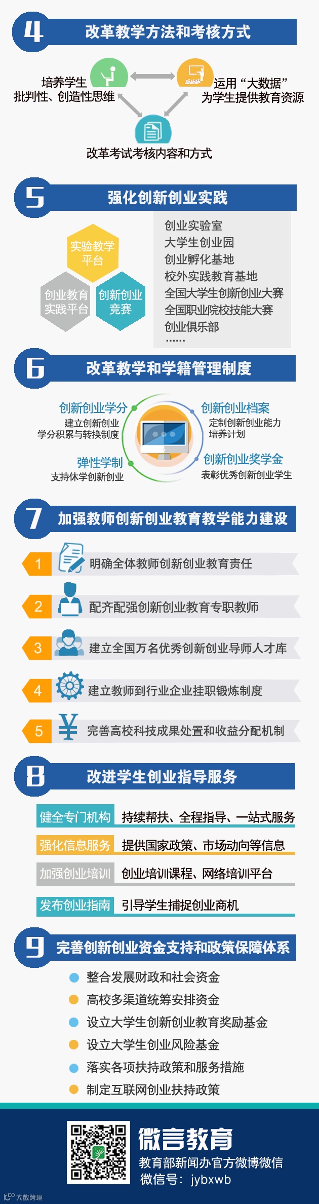 近日,《国务院办公厅关于深化高等学校创新创业教育改革的实施意见》印发,让我们一图了解高校创新创业教育总体目标和九大任务。