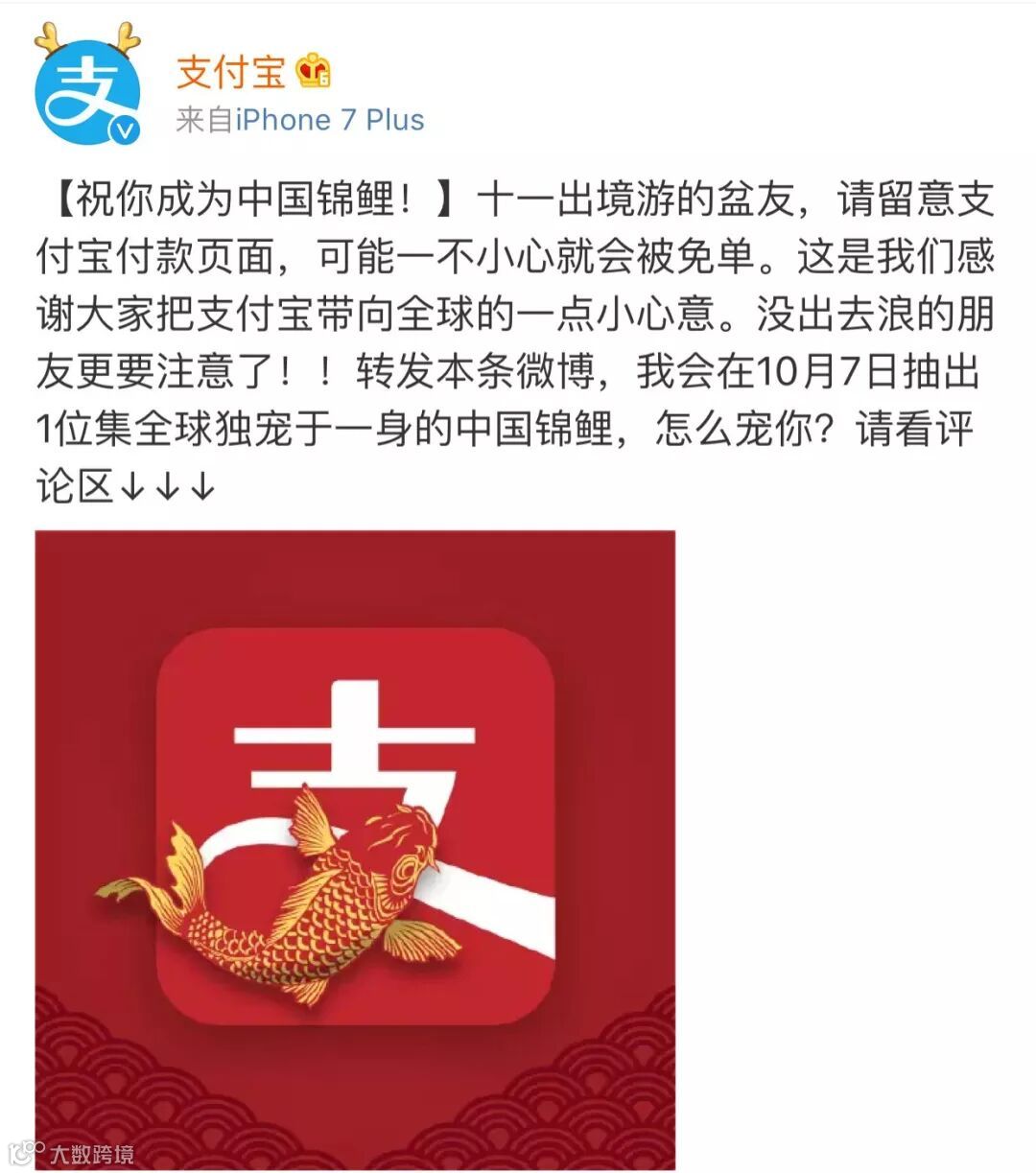 将在10月7日抽出一条中国锦鲤