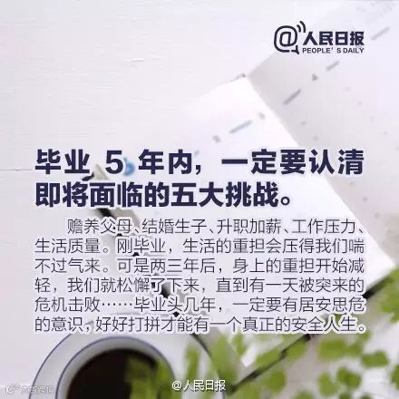 无论干啥,毕业后的5年,都将是你人生中的关键。这5年里的迷茫,或许会造成10年后的恐慌,20年后的挣扎,甚至一辈子的平庸。如何才能快速实现学生到职业人的转变?牢记吃亏是福,保持忧患意识……,9个建议给即将走出校园,或正在职场打拼的你。