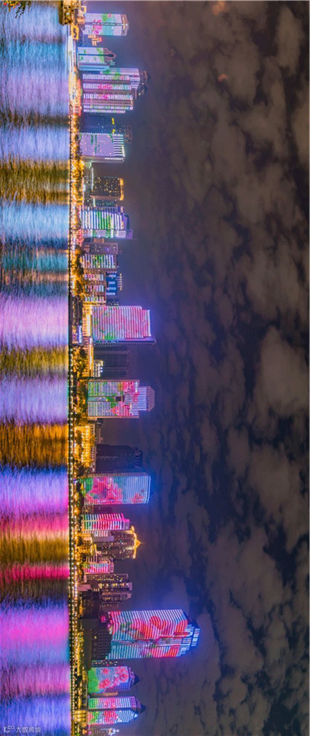 每晚的19:00、20:00,两岸建筑共演绎灯光动画,元素多变体现着广府文化。