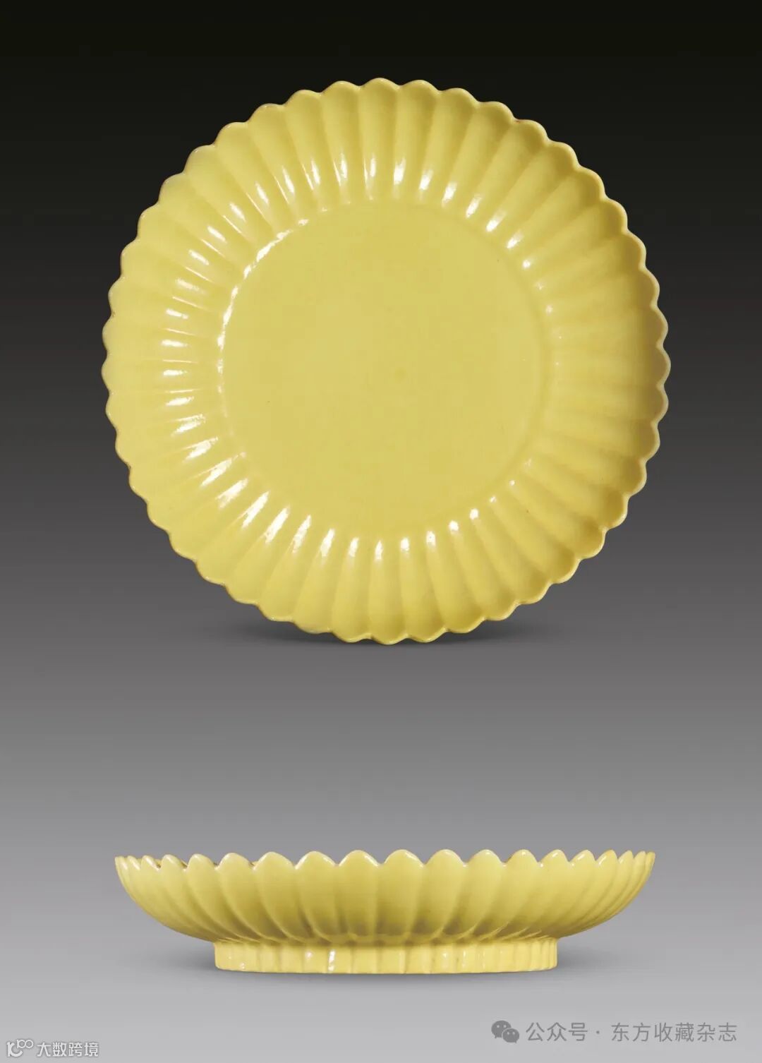 清雍正柠檬黄釉菊瓣盘,自得堂藏